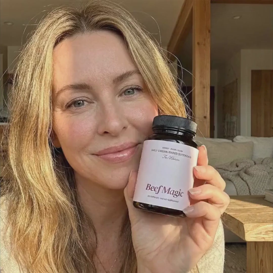 Beef Magic is a grass-fed beef organ supplement for women containing liver, heart, kidney, bone marrow, and pancreas.